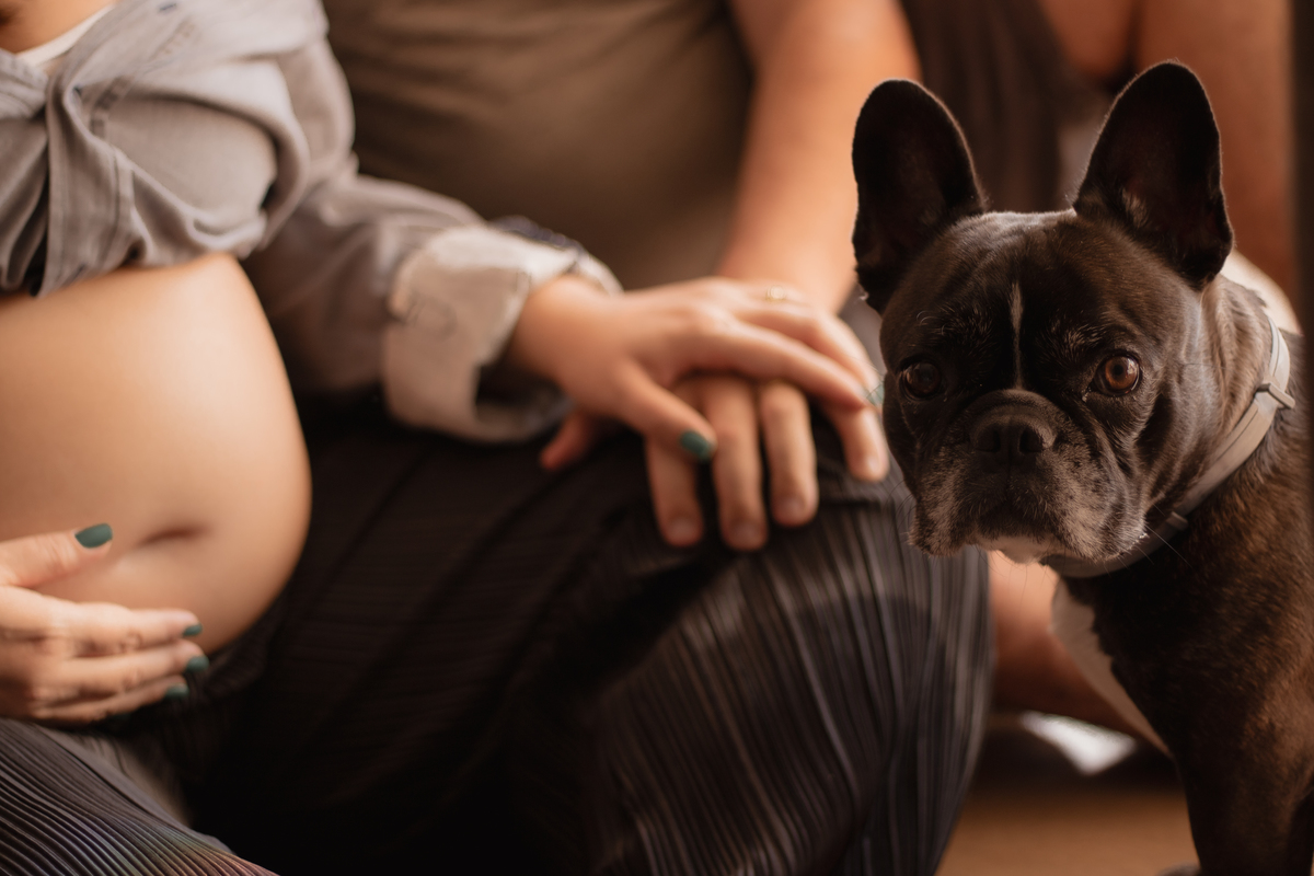 E não é que tudo acabou sendo perfeito? Fotografamos na casa deles e depois fomos dar uma volta no condomínio... Também tivemos a participação especial da Judite, a cachorrinha, e as fotos ficaram maravilhosas! Foi um momento especial e mágico, eternizando a expectativa da chegada do Bernardo.